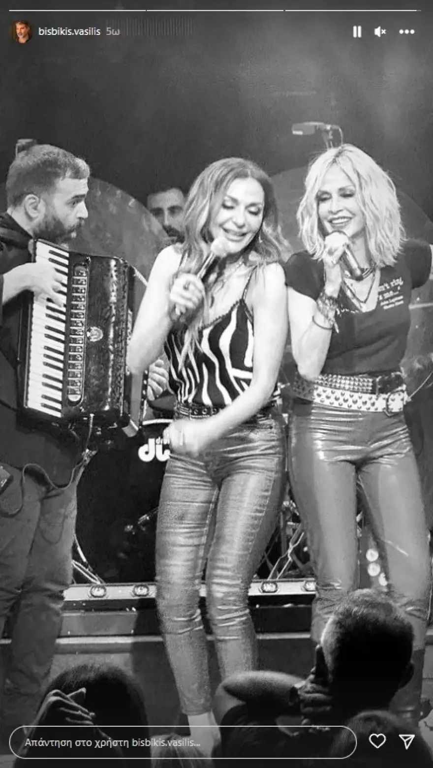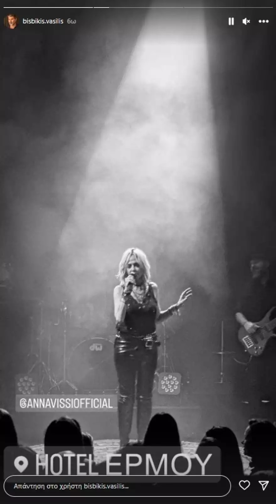 Και ο Βασίλης Μπισμπίκης έδειχνε να απολαμβάνει την προσοχή και τις ιδιαίτερες αφιερώσεις αφού ανέβασε Instagram story από την βραδιά.