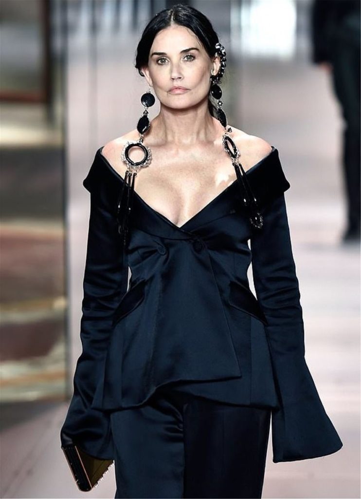Και ενώ η βραδιά κυλούσε κανονικά, όταν ανακοινώθηκε το όνομα της Ντέμι Μουρ μόλις βγήκε στην πασαρέλα, όλοι πάγωσαν. Προσπαθούσαν να αναγνωρίσουν ποια είναι αυτή με το θυμωμένο-βλοσυρό ύφος που περνούσε από μπροστά τους. Τα χειροκροτήματα κάλυψε ένα βουητό από σχόλια για την εμφάνισή της.
