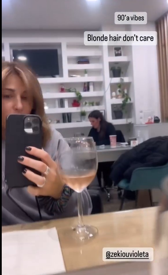 Στο βίντεο που δημοσίευσε, υπογράμμισε «Για μία ρίζα ήρθα και όμως έγινα ξανθιά. Σχεδόν…» και έγραψε «Blonde hair, don’t care!» και «90s vibes».