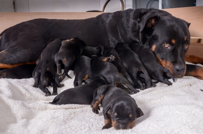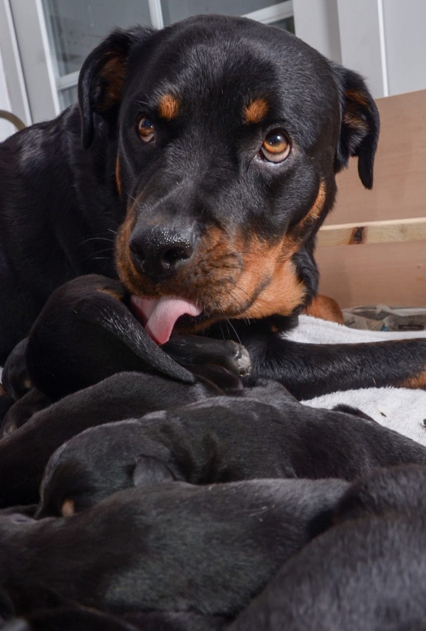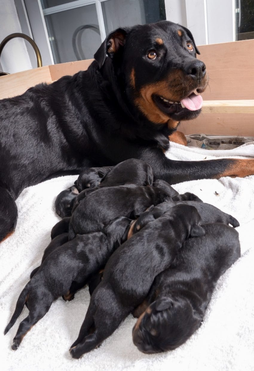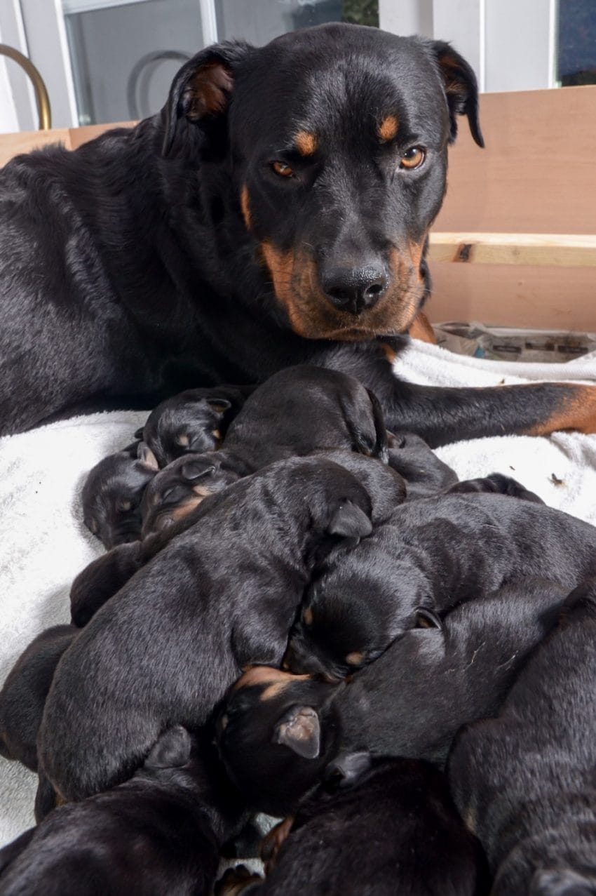 Ροτβάιλερ γέννησε 15 κουτάβια, και κανείς δεν το περίμενε! H ιδιοκτήτρια του ροτβάιλερ ενθουσιάστηκε όταν έμαθε πως η δίχρονη σκυλίτσα της περίμενε κουτάβια. Αλλά δεν ήξερε το πόσα θα έκανε. Εξαιτίας του κόστους του υπερήχου δεν μπορούσε να της τον κάνει. Έτσι της είπαν να περιμένει 6-8 μωρά.