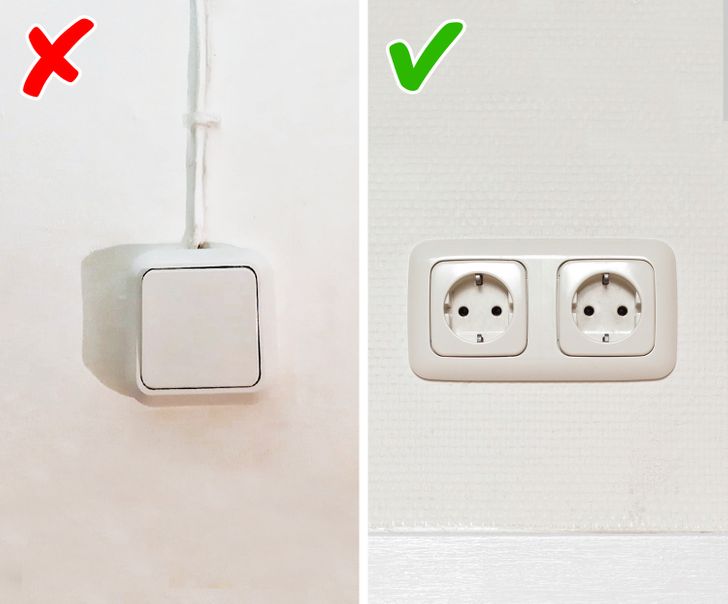 – Εξωτερική καλωδίωση: Κατά κανόνα, η εξωτερική καλωδίωση καταστρέφει σημαντικά την εμφάνιση ενός τοίχου. Επιπλέον, ούτε οι τρύπες από τα στερεωτικά καρφιά (ρόκα) δεν προσθέτουν ομορφιά. Γι’ αυτό, αν έχετε την ευκαιρία να κρύψετε καλώδια μέσα στον τοίχο, κάντε το.