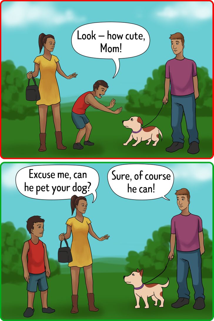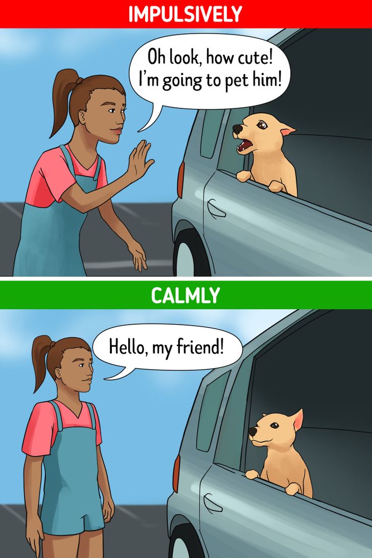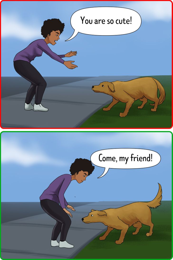 Μερικές φορές, καθώς περπατάμε στο δρόμο ή γύρω από το πάρκο μπορεί ξαφνικά να συναντήσουμε έναν άγνωστο να βγάζει βόλτα τον σκύλο του. Ενδέχεται να μην μπορούμε να ελέγξουμε την επιθυμία να πάμε προς το σκυλί και να το χαϊδέψουμε. Λοιπόν, η Σοφία Γιν, μια ειδική συμπεριφοράς ζώων, λέει ότι αν γίνει αυτή η πράξη απότομα μπορεί να είναι εκφοβιστική για τα σκυλιά (και ίσως και για τους ανθρώπους). Το καλύτερο που μπορείς να κάνεις είναι να το προσεγγίσεις αργά και με χαλαρό τρόπο. Έτσι, ο σκύλος θα έχει την ευκαιρία να αισθανθεί ασφαλής και να βεβαιωθεί ότι δεν πρόκειται να τραυματίσεις τον ίδιο ή το αφεντικό του.