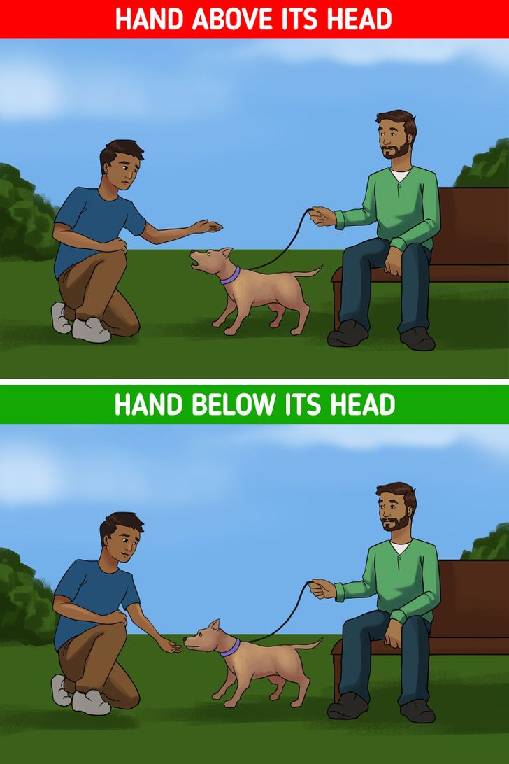 Είναι πολύ σύνηθες να χαϊδεύουμε το κεφάλι του σκύλου . Αυτό οφείλεται πιθανώς στο γεγονός ότι πολύ λίγοι άνθρωποι λαμβάνουν υπόψη ότι ενώ ορισμένα σκυλιά δεν έχουν πρόβλημα με αυτήν την χειρονομία, άλλα σκυλιά έχουν, και μάλιστα μεγάλο. Στην πραγματικότητα, ο κτηνίατρος Γιούρι Μπούρστιν λέει ότι αυτή η χειρονομία μπορεί να τους φαίνεται πράξη επιθετικότητας και γι ‘αυτό δεν είναι ασυνήθιστο να προκαλεί μια βίαιη αρνητική αντίδραση. Γι ‘αυτό, προτείνει ότι αφού πλησιάσουμε το σκυλί, να χαμηλώσουμε λίγο το χέρι μας για να το αφήσουμε να μας γνωρίσει.