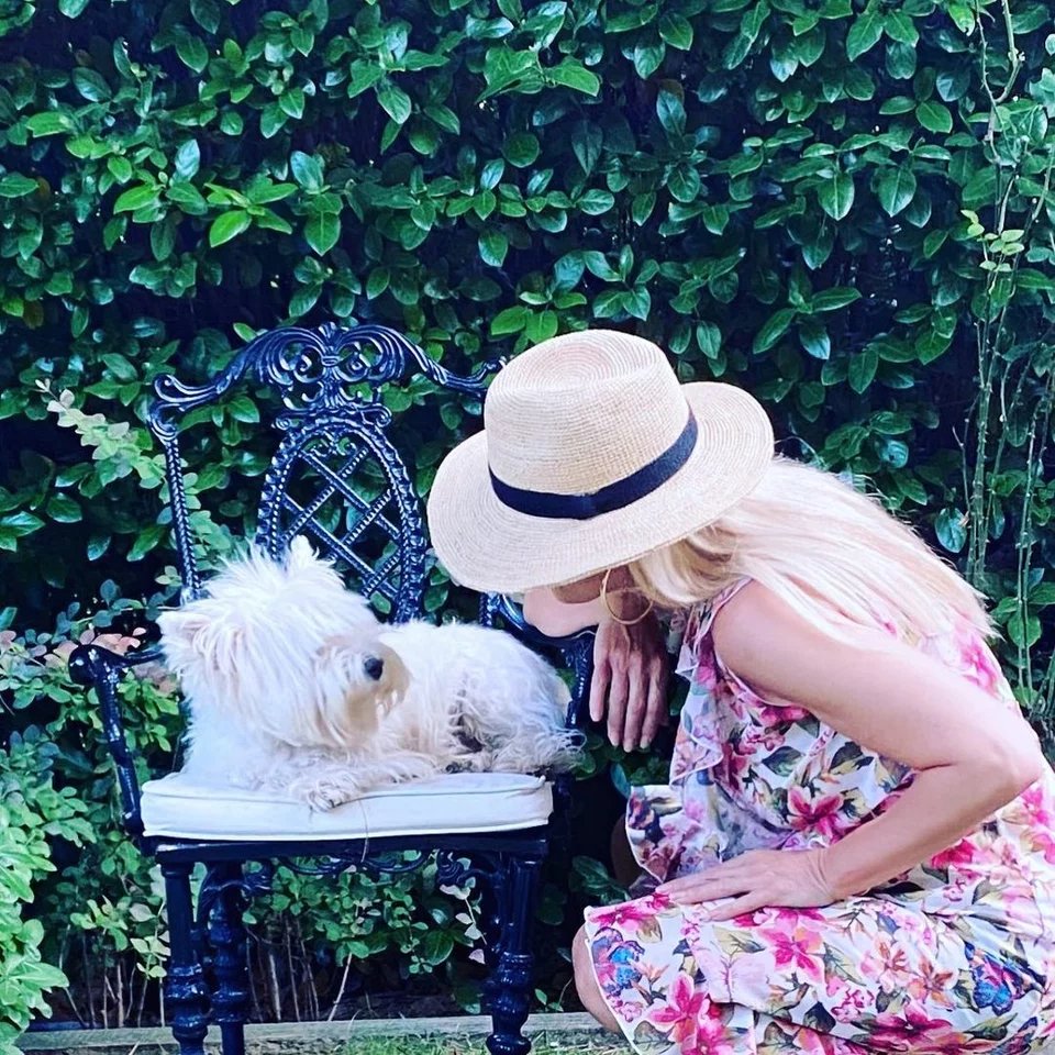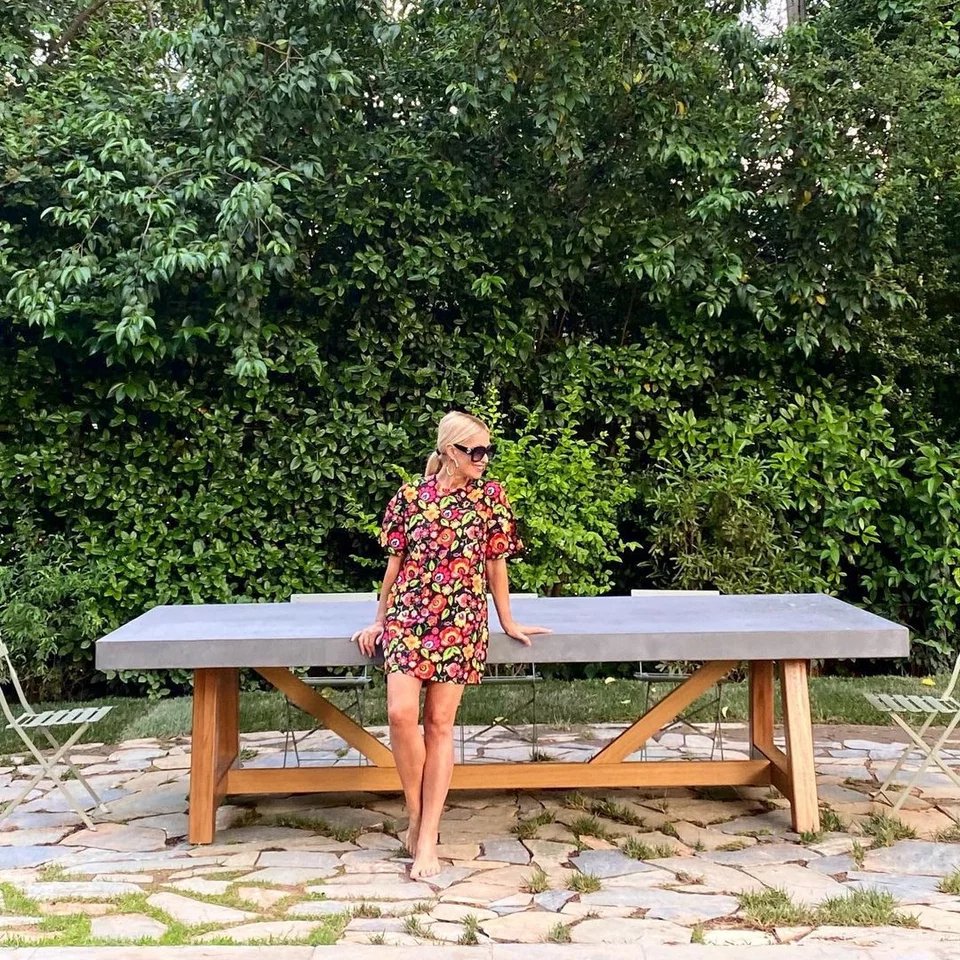 Ο εξωτερικός χώρος του σπιτιού περιλαμβάνει έναν μεγάλο κήπο με γκαζόν, όπου η αγαπημένη παρουσιάστρια απολαμβάνει στιγμές χαλάρωσης μαζί με τον σκύλο της, τον Μικέ.