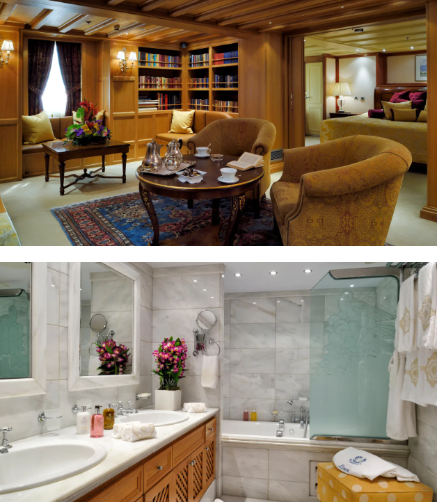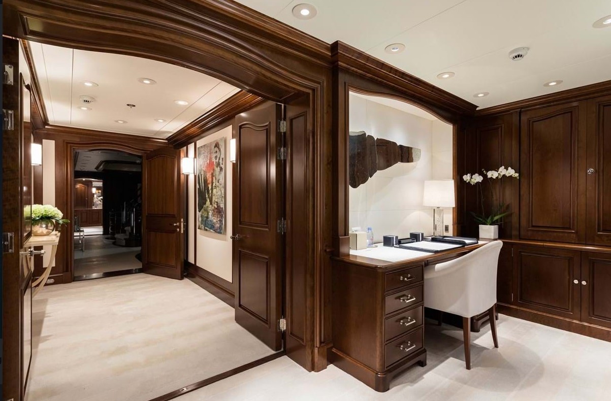 Η μεγαλοπρεπής θαλαμηγός μπορεί να φιλοξενήσει 66 άτομα (κι άλλα 35 άτομα πλήρωμα) στα 18 υπνοδωμάτιά της, ενώ διαθέτει προεδρική σουίτα, ελικοδρόμιο, βιβλιοθήκη, γυμναστήριο, σπα, μπαρ, κέντρο ομορφιάς και παιδότοπο.