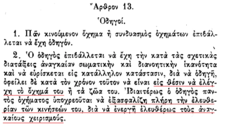 Μάλιστα, η υποχρέωση του οδηγού να είναι σε θέση να ελέγχει το όχημά του και να έχει πλήρη ελευθερία των κινήσεών του ισχύει ήδη εδώ και αρκετές δεκαετίες, και επί των προηγούμενων ΚΟΚ. Χαρακτηριστικά, στον ΚΟΚ του 1977 (Ν.614/1977), δηλαδή πριν 45 χρόνια, προβλέπονταν τα εξής ανάλογα στο άρθρο 13: