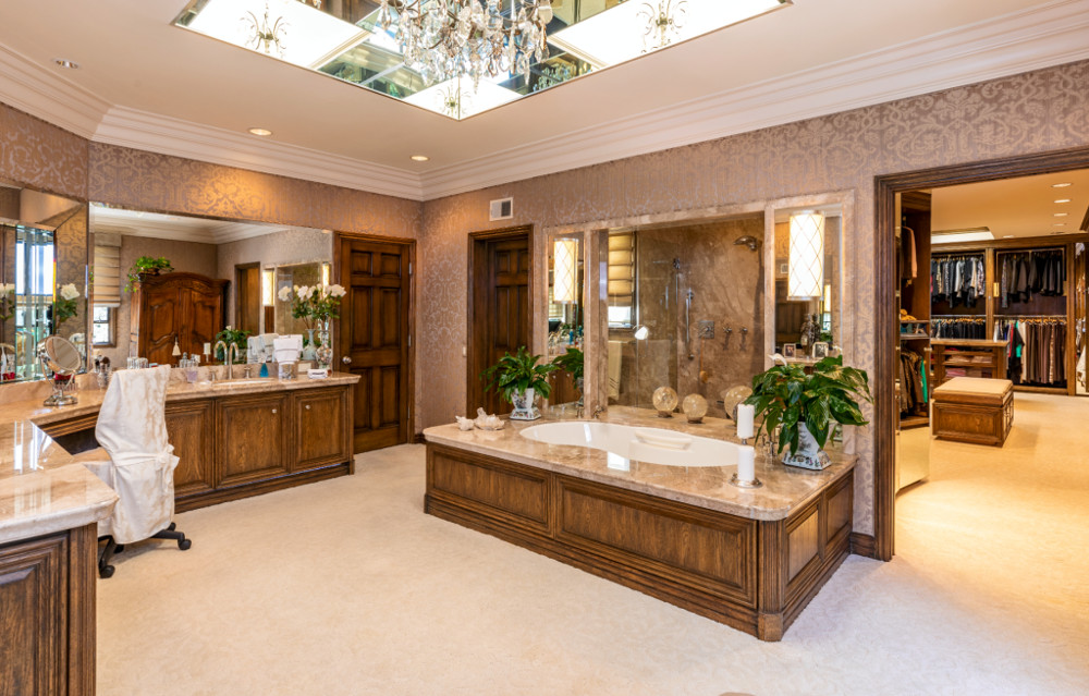 Τεράστια μπάνια, με μαρμάρινες μπανιέρες και άπλετους χώρους.