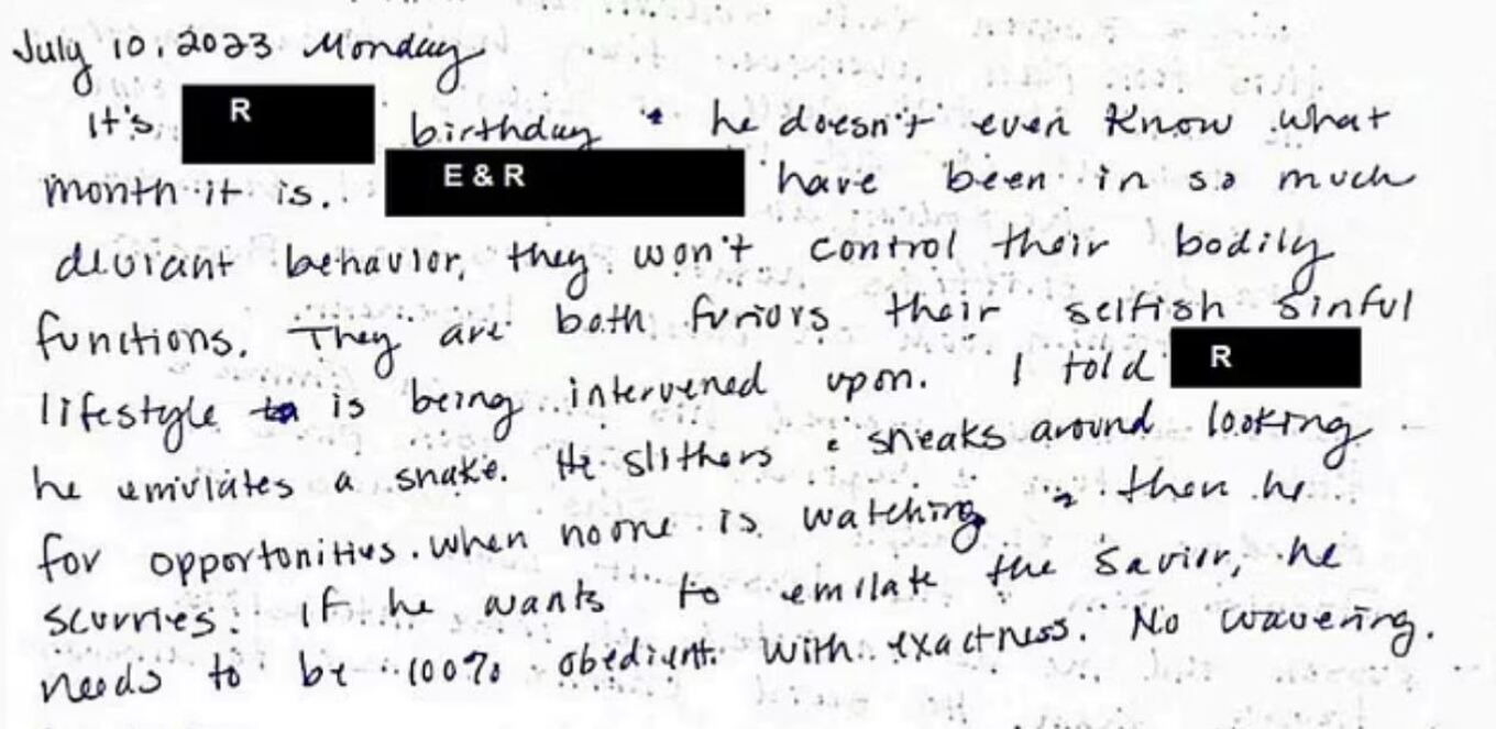 Η μητέρα των έξι παιδιών από τη Γιούτα ανέδειξε τον θρησκευτικό της φανατισμό σε κάθε σελίδα του ημερολογίου, καθώς συχνά έγραφε ότι επέβαλλε ποινές στα παιδιά της επειδή πίστευε πως ήταν «δαιμονισμένα» από τον διάβολο.