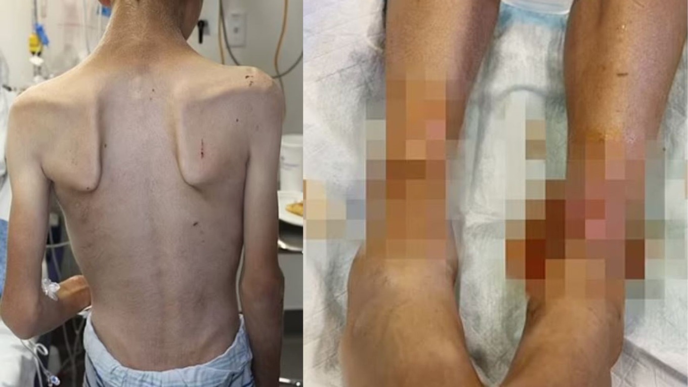 Συγκεκριμένα, οι εικόνες αποτυπώνουν τα χέρια και τα πόδια του νεαρού αγοριού που είναι τυλιγμένα με μονωτική ταινία, καθώς και μολυσμένες πληγές γεμάτες αίμα και πύον.