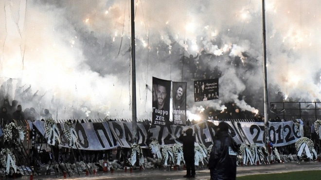 Πριν την έναρξη του αγώνα, αντιπροσωπεία των δύο ομάδων αλλά και φιλάθλων κατέθεσαν στεφάνια μπροστά από τη Θύρα 4 για τους επτά φιλάθλους του ΠΑΟΚ που έχασαν τη ζωή τους στη Ρουμανία. Εκεί έχει αναρτηθεί γιγαντοπανό που γράφει “Καλό παράδεισο αδέρφια 27/1/2026” ενώ αρκετοί κρατούν πλακάτ με τις φωτογραφίες των θυμάτων.
