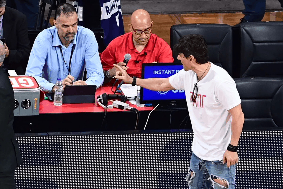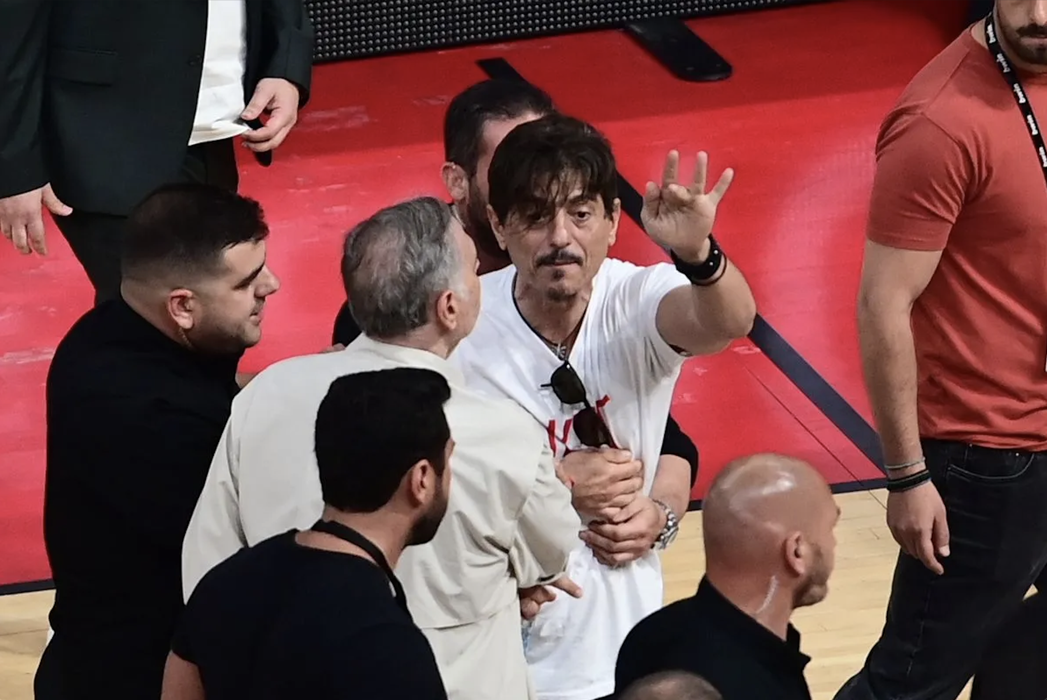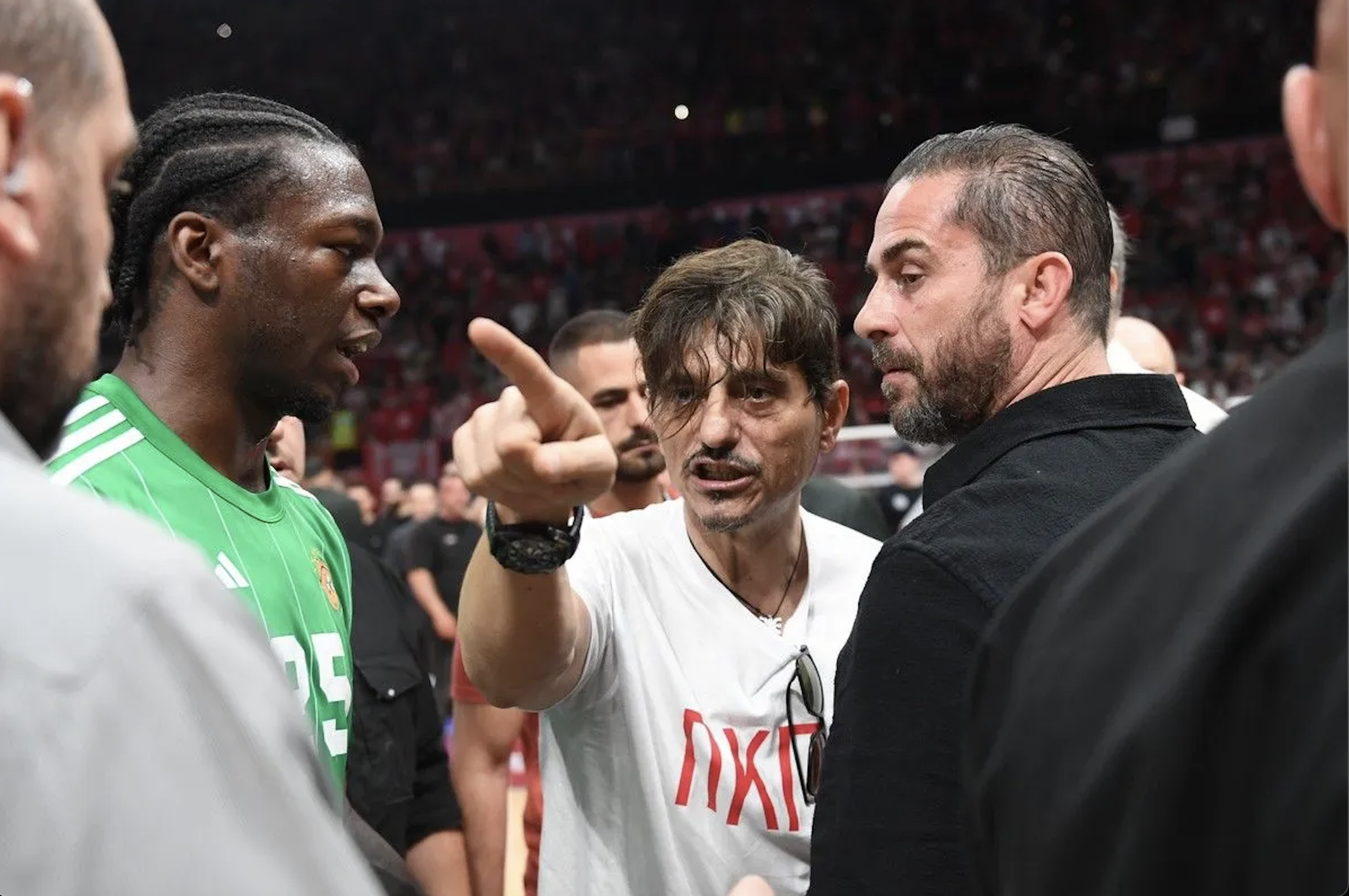 Πριν πάρει τη θέση του δίπλα στον πάγκο, ο Δημήτρης Γιαννακόπουλος πήγε στη γραμματεία, ζητώντας να καταγραφεί υβριστικό σύνθημα σε βάρος του, ωστόσο, αυτό δεν γίνεται πριν από το τζάμπολ.