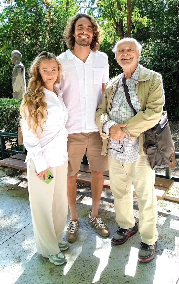 Συγκεκριμένα, το ζευγάρι επισκέφθηκε τον όμιλο Αντισφαίρισης Αθηνών, με τον Έλληνα τενίστα να φωτογραφίζεται στο μπαλκόνι του ΟΑΑ μπροστά από τον ναό του Ολυμπίου Διός.