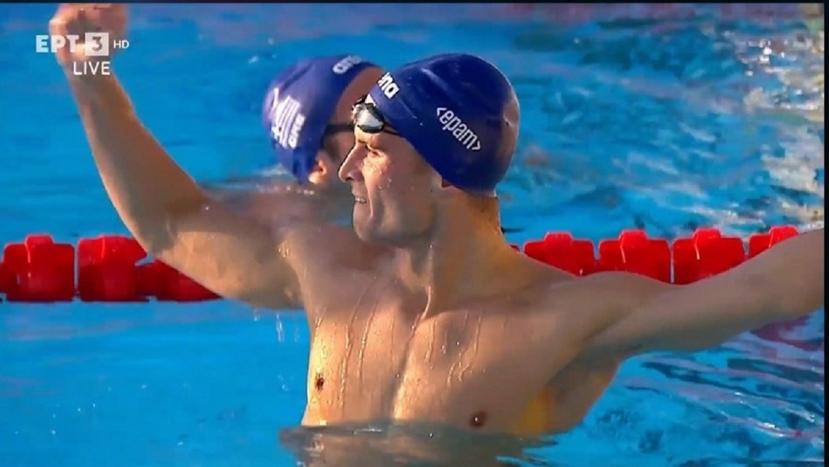 Ο Παπαστάμος ακολούθησε δύο Ούγγρους, τον Balazs Hollo και τον Gabor Zobori, στα 100 πεταλούδα (δεν είναι το στυλ του) και “πήρε το προβάδισμα” στο ύπτιο και άνοιξε μεγάλο προβάδισμα στο πρόσθιο.