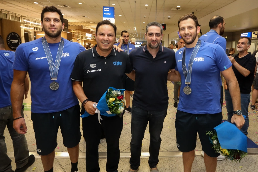 Η Εθνική Πόλο Ανδρών επέστρεψε στην Ελλάδα, κατακτώντας τη δεύτερη θέση στο Παγκόσμιο Πρωτάθλημα της Φουκουόκα στην Ιαπωνία και η υποδοχή που της επιφύλαξαν στο αεροδρόμιο “Ελευθέριος Βενιζέλος” ήταν ιδιαίτερα θερμή.