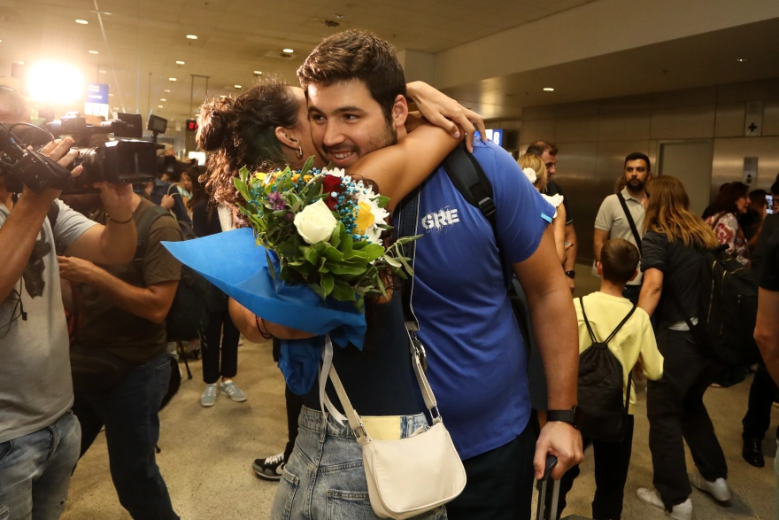 Η αποστολή της Εθνικής έφτασε 00:50 στο «Ελευθέριος Βενιζέλος» και μόλις βγήκαν από την αίθουσα αφίξεων, τα αγαπημένα τους πρόσωπα έπεσαν πάνω τους, με μεγάλες αγκαλιές και φιλιά.