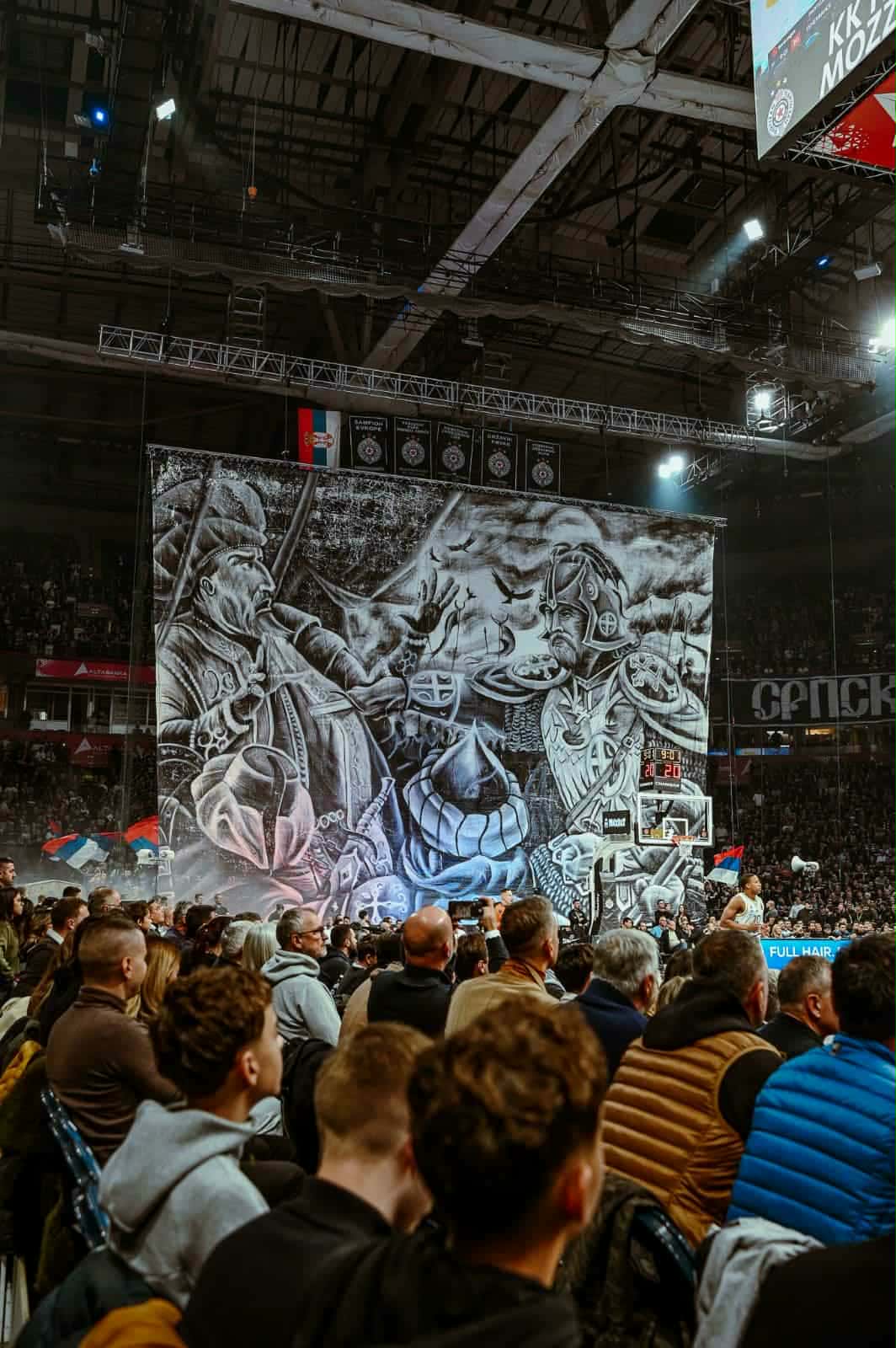 Το πανό που σήκωσαν οι Σέρβοι οπαδοί στο γήπεδο απεικόνιζε τον θάνατο του σουλτάνου Μουράτ Α’ από τον Σέρβο ιππότη, Μίλος Όμπιλιτς, στη μάχη του Κοσσυφοπεδίου το 1389.