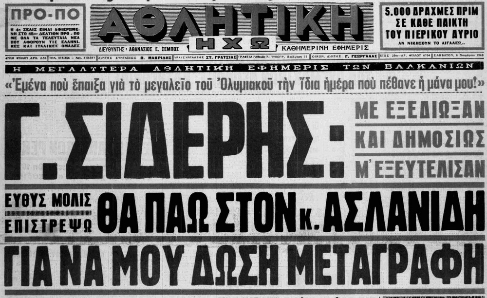 Τέλος πάντων, ξαφνικά μπήκα εκεί μέσα στη γειτονιά στις αλάνες και έπαιζα ποδόσφαιρο ώσπου ξαφνικά μια μέρα, ήταν κάποιος από την ομάδα του Απόλλωνα της γειτονιάς, κάποιος είχε αρρωστήσει και παίζαμε σε ένα γήπεδο που είχαμε κάπου εκεί στο ποτάμι στον Κηφισό και μου λέει έλα να παίξεις. Λέω δεν έχω ούτε παπούτσια, μου δώσανε κάτι αρβύλες που υπήρχαν εκεί. Αλλά ήμουν τόσο γρήγορος και δυνατός και κατά σύμπτωση ήταν στο γήπεδο κάτι κυνηγοί ταλέντων που παρακολουθούσα κι ήταν κι ο αδερφός μου, ο συγχωρεμένος ο Φώτακας, με έναν φίλο του εκεί και λέει “αυτός που τρέχει έτσι ποιος είναι;” Εγώ εν τω μεταξύ με την ταχύτητα και με την δύναμη που είχα σε όποιον έπεφτα επάνω, τον χτύπαγα, βρισκόταν κάτω χτυπημένος και λέει “κάπου τον ξέρω αυτόν” και του απαντάει “είναι το αδερφάκι μου” κι έτσι ξαφνικά έδειξε ενδιαφέρον. Από τα οχτώ αδέρφια που ήμασταν οι τέσσερις ήταν ποδοσφαιριστές και παίζαμε όλοι στον Ατρόμητο Καμινίων”.