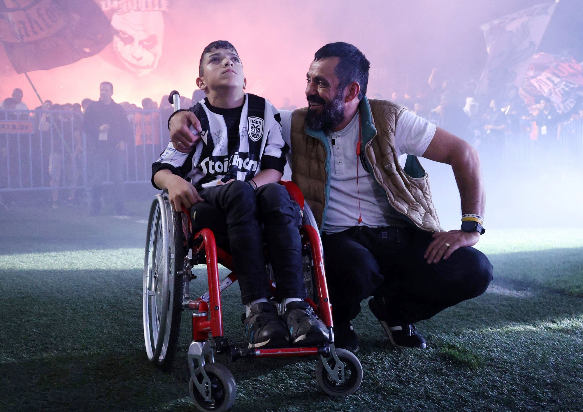 Εδώ και έναν χρόνο, από τον Τελικό Κυπέλλου στον Βόλο τον Μάιο του 2023, αυτός ο μικρός ήρωας, που κινείται αναγκαστικά με αναπηρικό αμαξίδιο, έχει ταυτιστεί με το ιδεώδες των γηπέδων. Ενσαρκώνει το μεγάλο, το ωραίο και το αληθινό, το οποίο, όσο δυναμώνει παγκοσμίως, τόσο παραδόξως εξασθενεί στην Ελλάδα.