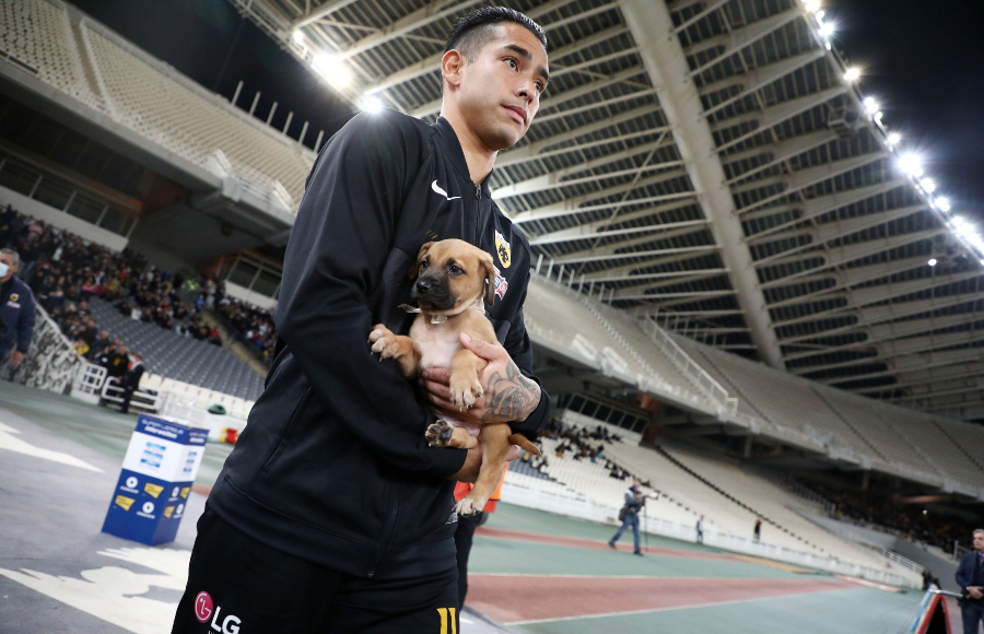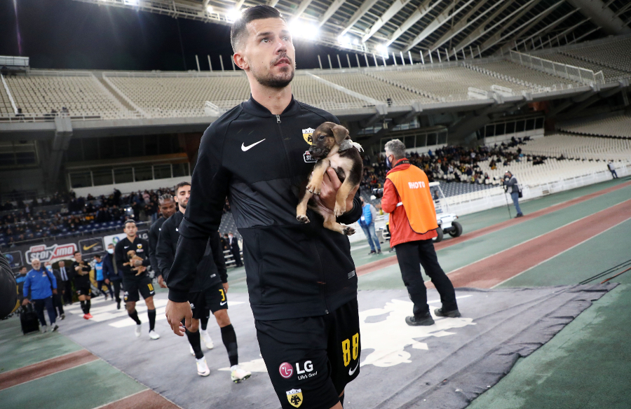 Με 8 αδέσποτα κουταβάκια στην αγκαλιά μπήκαν οι παίκτες της ΑΕΚ στον αγώνα