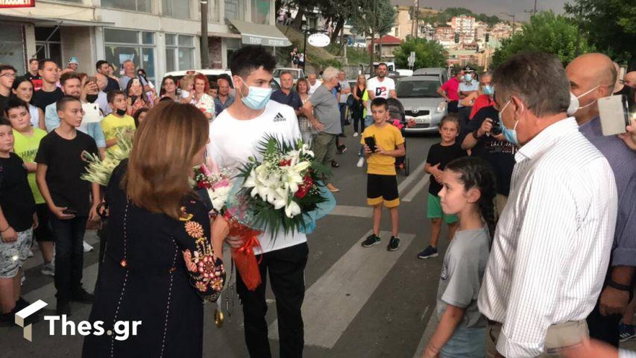 Πλήθος κόσμου συνέρρευσε να δει από κοντά τον Μίλτο Τεντόγλου και τον συνεχάρη για την τεράστια επιτυχία του, καθώς έγινε ο πρώτος Έλληνας που κατακτά χρυσό μετάλλιο στο μήκος στην Ιστορία των Ολυμπιακών Αγώνων.