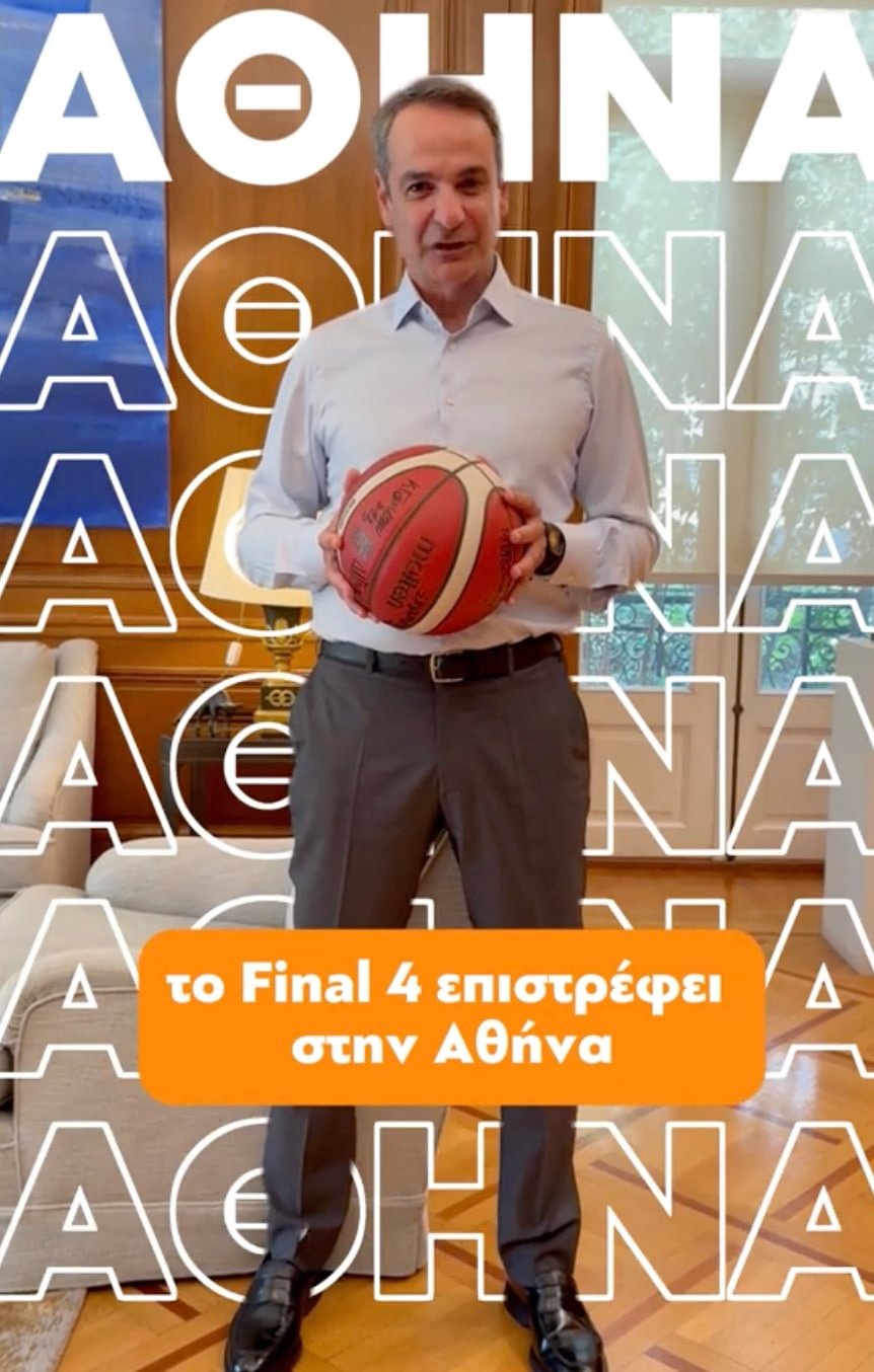 Ο Κυριάκος Μητσοτάκης υποδέχθηκε την είδηση της επιστροφής του Final Four της Euroleague στην Αθήνα με μία μπάλα μπάσκετ στο χέρι και υπό τους ήχους του «Final Countdown».