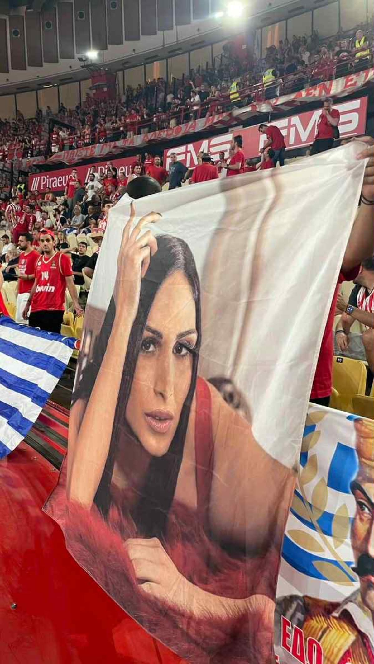 Η μεγάλων διαστάσεων φωτογραφία της τραγουδίστριας βρισκόταν υψωμένο στο γήπεδο καθ’ όλη τη διάρκεια του τέταρτου τελικού της Stoiximan GBL, για ακατανόητο λόγο.