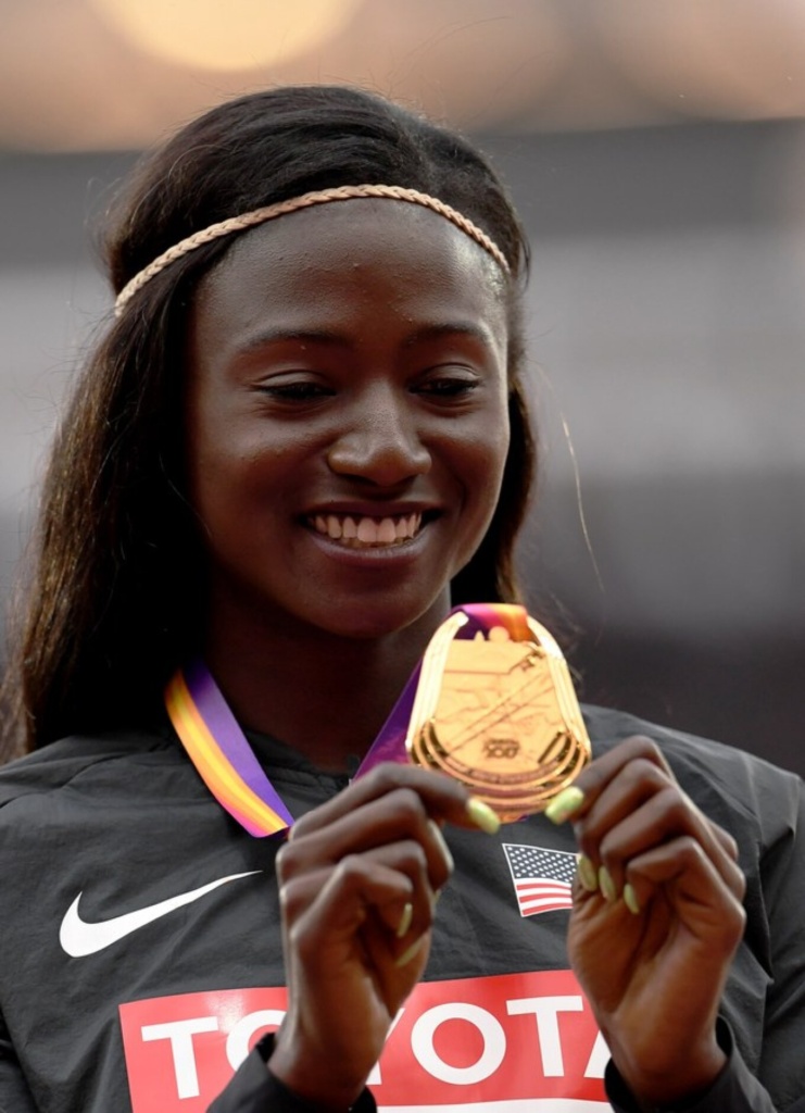 Ένα χρόνο αργότερα, στο Παγκόσμιο Πρωτάθλημα του Λονδίνου, κατάφερε να πάρει το χρυσό μετάλλιο στα 100μ. με επίδοση 10.85, νικώντας για ένα εκατοστό του δευτερολέπτου τη Μαρί-Ζοζέ Τα Λου από την Ακτή Ελεφαντοστού, ενώ ανέβηκε στο ψηλότερο σκαλί του βάθρου και στη σκυταλοδρομία.