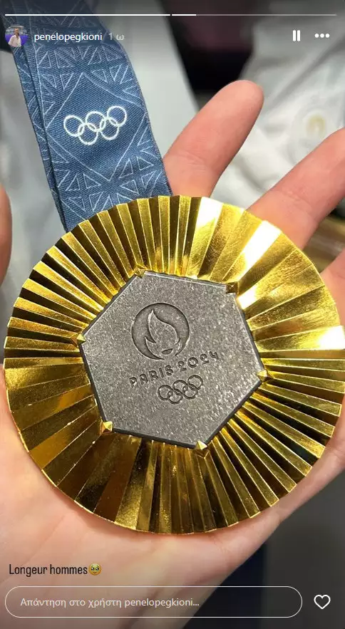 Λίγα λεπτά μετά την απονομή του χρυσού μεταλλίου, η σύντροφος του Ολυμπιονίκη, Πηνελόπη Γκιώνη, πραγματοποίησε μια σχετική ανάρτηση, στην οποία εικονίζεται αγγίζοντας το πολύτιμο μετάλλιο.