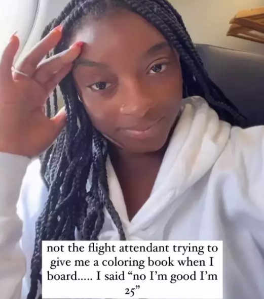 Η ολυμπιονίκης δημοσίευσε μία φωτογραφία της στα μέσα κοινωνικής δικτύωσης συνοδευόμενη από το σχόλιο για την αεροσυνοδό που προσπαθούσε να της δώσει μπλοκ ζωγραφικής κατά την επιβίβαση.