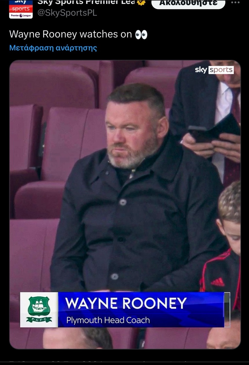 Μάλιστα, το Sky Sports ανήρτησε μία φωτογραφία στο X (πρώην Twitter), η οποία τράβηξε αμέσως την προσοχή των θαυμαστών, με πολλούς από αυτούς να εκφράζουν την ανησυχία τους, σχετικά με το βάρος, αλλά και το γεγονός πως ο Ρούνεϊ φαίνεται μεγαλύτερος από την ηλικία του.