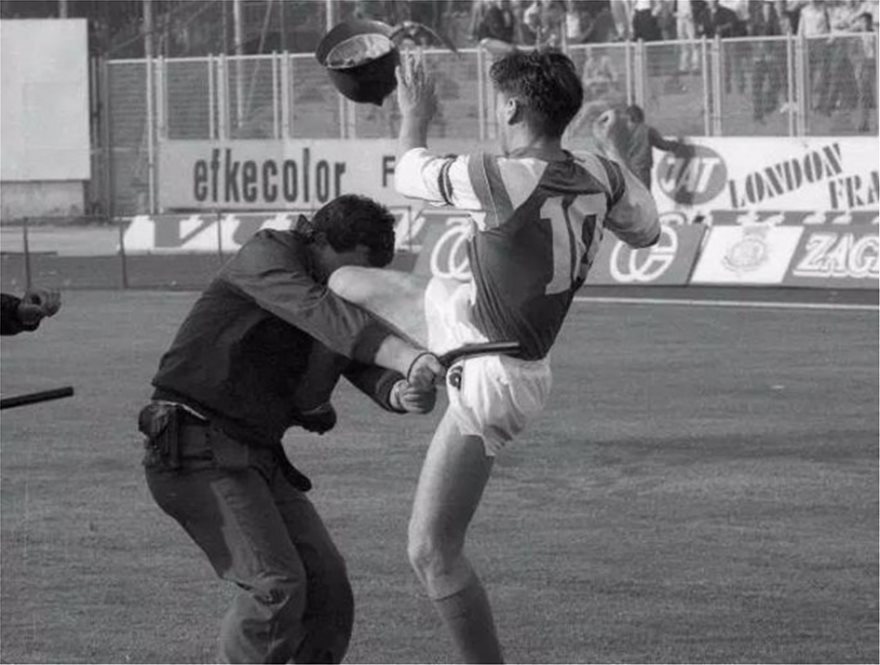 Ένας αστυνομικός (για τους Κροάτες η αστυνομία ήταν όργανο των Σέρβων) χτυπά με το γκλομπ του οπαδό της Ντινάμο προκαλώντας την αντίδραση του Ζβόνιμιρ Μπόμπαν. Ο 20χρονος επιτελικός μέσος των γηπεδούχων ήταν το ανερχόμενο αστέρι της Ντινάμο κι αυτομάτως έγινε ο ήρωας όλων των Κροατών.