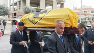 Το φέρετρο του θρυλικού Μίμη της ΑΕΚ, είναι καλυμμένο με τη σημαία της ομάδας.