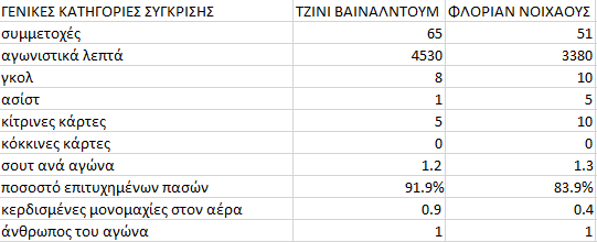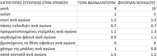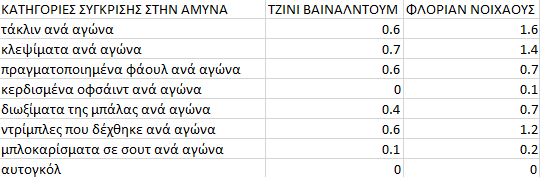 – Σύγκριση στην άμυνα: