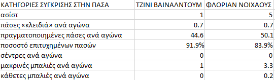 Τζίνι Βαϊνάλντουμ – Φλοριάν Νόιχαους: Η σύγκριση των δύο παικτών ανά κατηγορία, βάσει στατιστικών