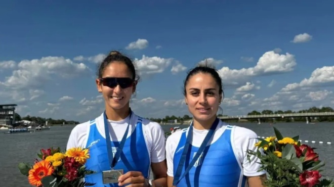 Γράφουν ιστορία οι Ζωή Φίτσιου και Μιλένα Κοντού που για δεύτερο συνεχόμενο Ευρωπαϊκό πρωτάθλημα κωπηλασίας μετά το Μπλεντ το 2023 και στο Ζεγκεντ της Ουγγαρίας σήμερα κατάφεραν να κατακτήσουν το ασημένιο μετάλλιο στο διπλό σκιφ ελαφρών βαρών τερματίζοντας σε 7:31.94 πίσω από το πλήρωμα της Ρουμανιας που πήρε το χρυσό σε 7:29.63 και μπροστά από το ιταλικό που πήρε το χάλκινο με 7:33.73.