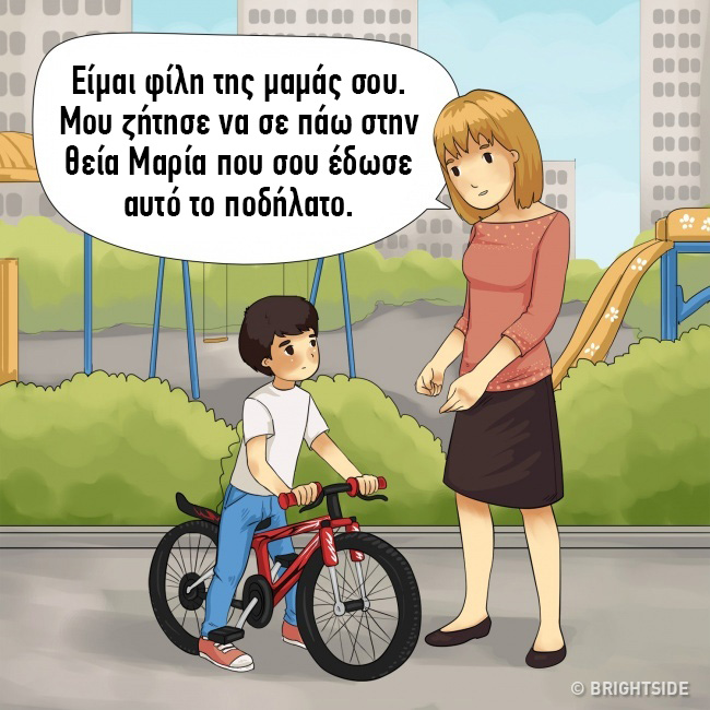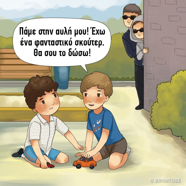 Ένα από τα πιο συνηθισμένα κόλπα που χρησιμοποιούν οι απαγωγείς είναι ότι απλά ζητούν βοήθεια από ένα παιδί. Εάν παρατηρήσετε μια τέτοια κατάσταση, μπορεί να είναι ένα προειδοποιητικό σημάδι επειδή οι κανονικοί ενήλικες δεν ζητούν βοήθεια από τα άγνωστα παιδιά.