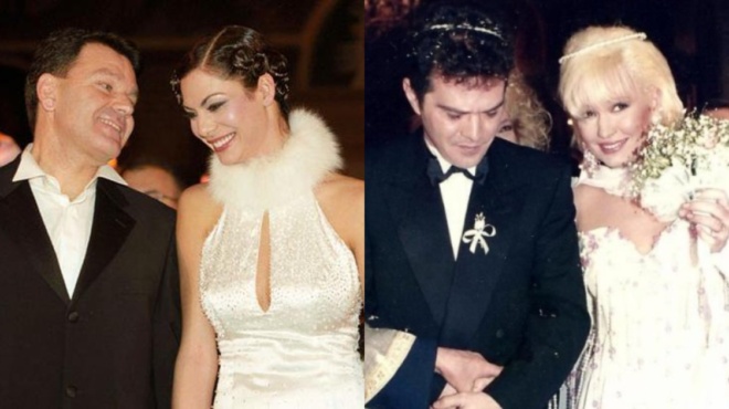 – Ένας από τους μακροβιότερους γάμους της ελληνικής σόουμπιζ που ξεκίνησε με μια live πρόταση στο σόου της Ρούλας Κορομηλά. Η Καίτη Γαρμπή και ο Διονύσης Σχοινάς παντρεύτηκαν στις 4 Μαΐου του 1997 σε μια πολύ ρομαντική τελετή στο κτήμα Νάσιουτζικ. Η Καιτούλα φορούσε νυφικό δια χειρός Σήλιας Κριθαριώτη, η τελευταία πρόβα του οποίου έκανε τη νύφη να “στήσει” τους καλεσμένους 2 (!) ώρες