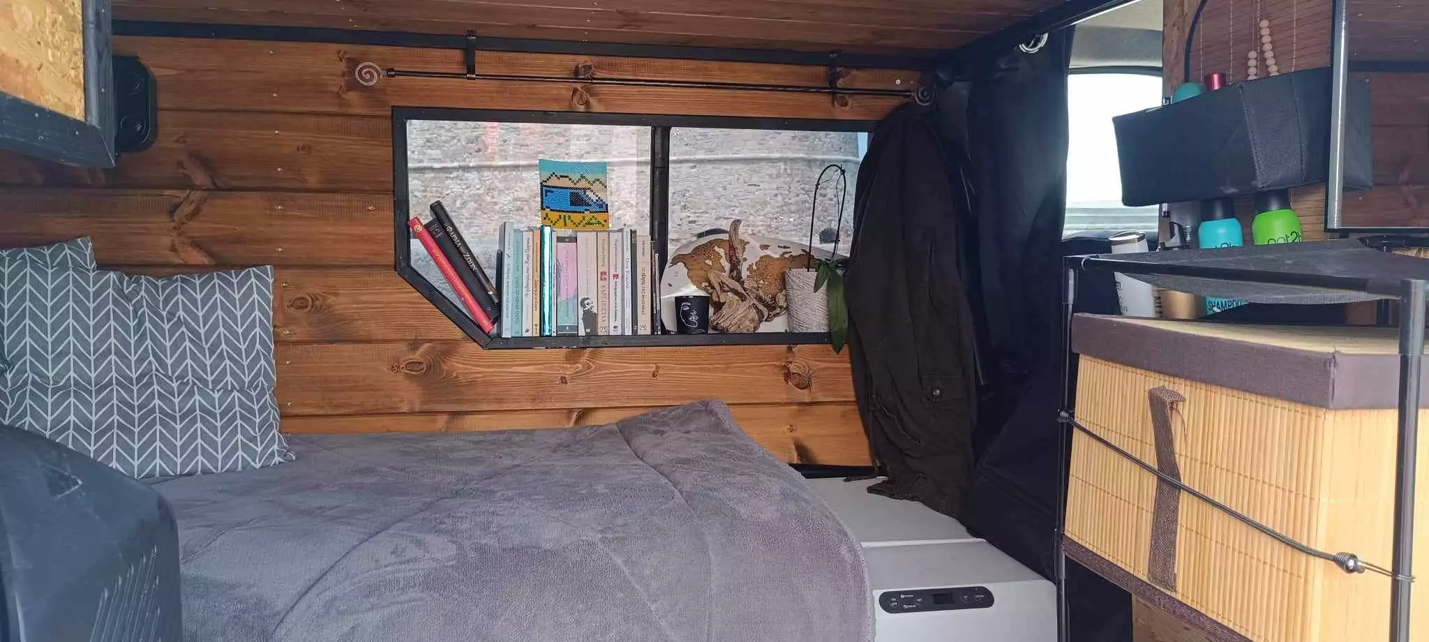 «Ενώ η σκέψη είχε “τρυπώσει” στο μυαλό μου στα 25 μου, το βαν κατάφερα να το αγοράσω περίπου δύο χρόνια μετά. Όλο αυτό το διάστημα έψαξα πολύ για να βρω πώς να το φτιάξω και τι θα χρειαζόμουν για τη μετατροπή. Από τη στιγμή που το αγόρασα, κυριολεκτικά άρχισα να το χτίζω εσωτερικά με ξύλο. Πλέον είναι μια μικρή πλήρως επιπλωμένη γκαρσονιέρα για μένα» ανέφερε, με τη χαρά του ανθρώπου που ζει έχοντας μαζί του όλα του τα υπάρχοντα. Στο ερώτημα αν φοβήθηκε ποτέ και τι μπορεί να ήταν αυτό που τη φόβισε, απάντησε ότι ως άνθρωπος που γενικά δεν φοβάται, το μόνο που είχε σκεφτεί ήταν τι θα γινόταν αν τελικά δεν της ταίριαζε ως τρόπος ζωής. «Σκεφτόμουν όμως ότι ακόμα και αν έκανα λάθος επιλογή, ότι δεν πειράζει, θα πουλούσα το βαν και θα έκανα κάτι άλλο».