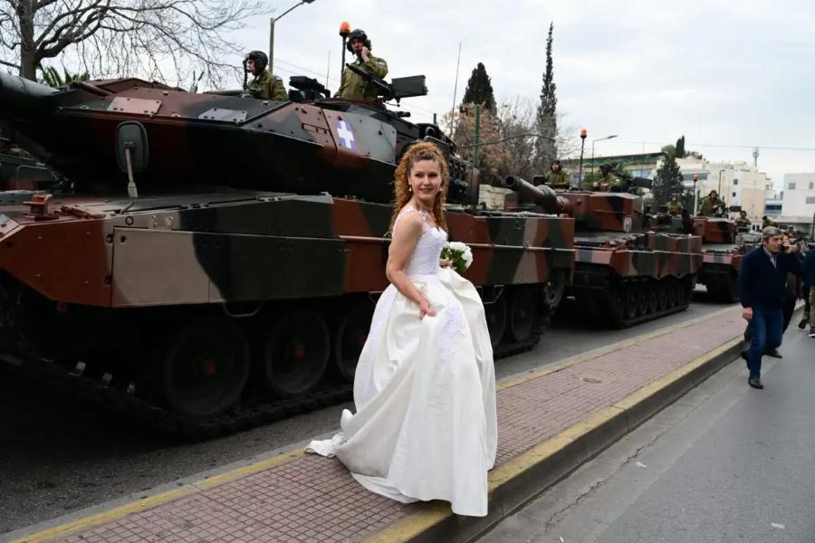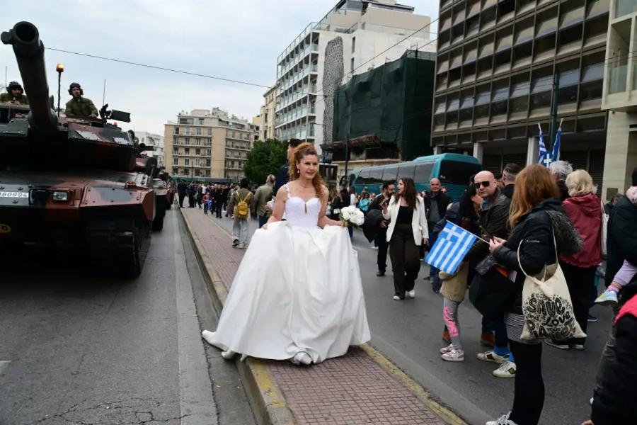 Την ώρα που όλοι ετοιμάζονταν για την παρέλαση της 25ης Μαρτίου έκανε την εμφάνισή της μια νύφη.