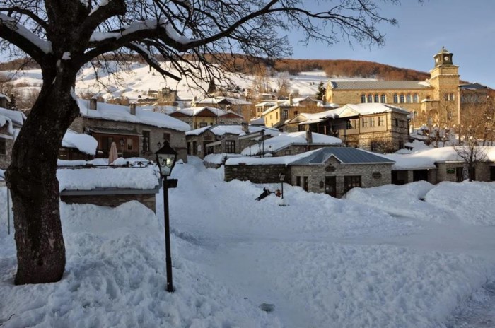 Στο Νυμφαίο θα περπατήσετε ανάμεσα στα επιβλητικά αρχοντικά και θα παρατηρήσετε τις στέγες από λαμαρίνα, οι οποίες είναι έτσι σχεδιασμένες ώστε να μην κρατούν το χιόνι.