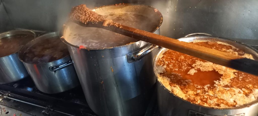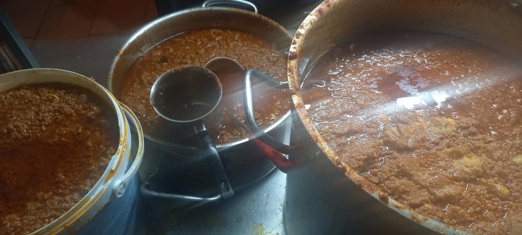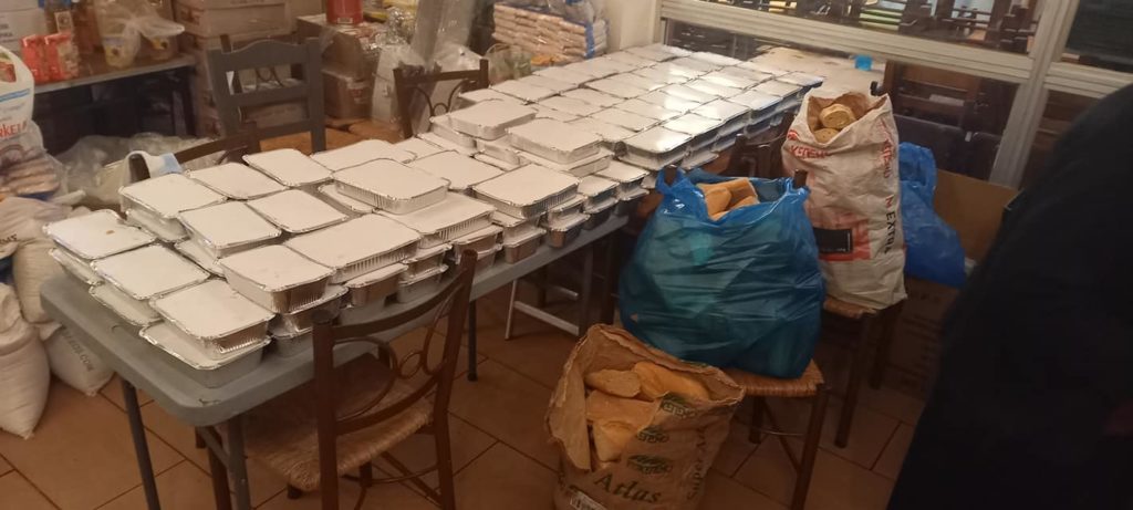Ο Δημήτρης αγοράζει με δικά του έξοδα την πρώτη ύλη για να φτιάξει μαγειρευτό φαγητό για όσους το έχουν ανάγκη: μακαρόνια με κιμά, φακές, φασολάδα, κοτόπουλο με πατάτες, λαδερά… Σταδιακά, και ειδικά τώρα, στην δεύτερη και «σκληρή» καραντίνα του χειμώνα, άρχισε ο κόσμος να συνδράμει με σακούλες γεμάτες με προμήθειες (λάδι, αλεύρι, ζυμαρικά, πελτέδες).