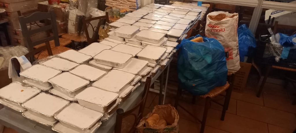 Όσο μιλάμε στο τηλέφωνο, ακούω ήχους από κατσαρολικά και σακούλες που ανοίγουν. Η επικοινωνία μας έλαβε χώρα σε ώρα αιχμής και ο Δημήτρης Καρκανοραχάκης κλείνει ευγενικά για να συνεχίσει να προσφέρει και να βοηθά. Όποιος μπορεί και θέλει να τον ενισχύσει, μπορεί να πάει στο μαγαζί του τρόφιμα και άλλα είδη ή να προσφερθεί να μαγειρέψει κάποια μέρα μαζί του.
