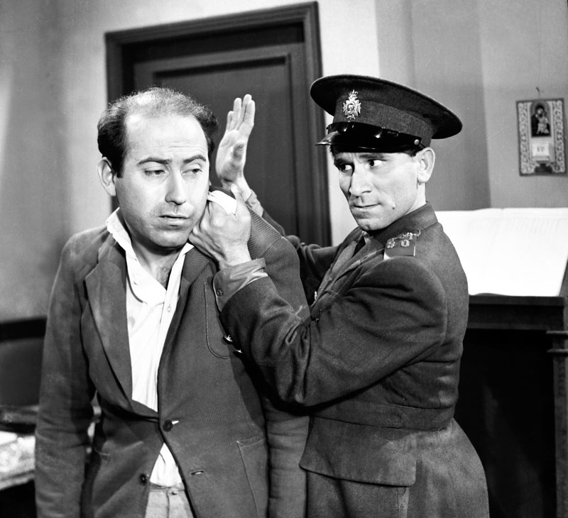 Ο Βέγγος ντύνει πόλισμαν (έτσι τον αναφέρουν σε όλο το έργο τον Αστυνομικό) τον Χατζηχρήστο και ετοιμάζονται να κάνουν την κλοπή σε ένα σπίτι. Ο πρώτος πράτει την κλοπή πηδώντας μια μάντρα και ο δεύτερος κρατάει τσίλιες. Όμως η Μαρίκα Κρεβατά παίρνει τον πόλισμαν στο παρακείμενο σπίτι που ισχυρίζονται πως έγινε κλοπή μπιζού. Το ζευγάρι στο σπίτι (έδωσαν ενέχυρο το δαχτυλίδι της Κρεβατά) τα ρίχνει στην υπηρέτρια για να γλυτώσει το σκάνδαλο με το δαχτυλίδι που εκλάπη.