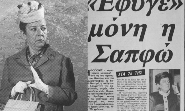 2. Σαπφώ Νοταρά: Η κωμικός Σαπφώ Νοταρά έγραψε ξεχωριστή ιστορία στον ελληνικό κινηματογράφο. Τα τελευταία χρόνια της ζωής της, τα πέρασε ολομόναχη και χωρίς οικονομικούς πόρους σε ένα μικρό διαμέρισμα το ενοίκιο του οποίου πλήρωνε κάποιος νέος επιχειρηματίας θαυμαστής της.