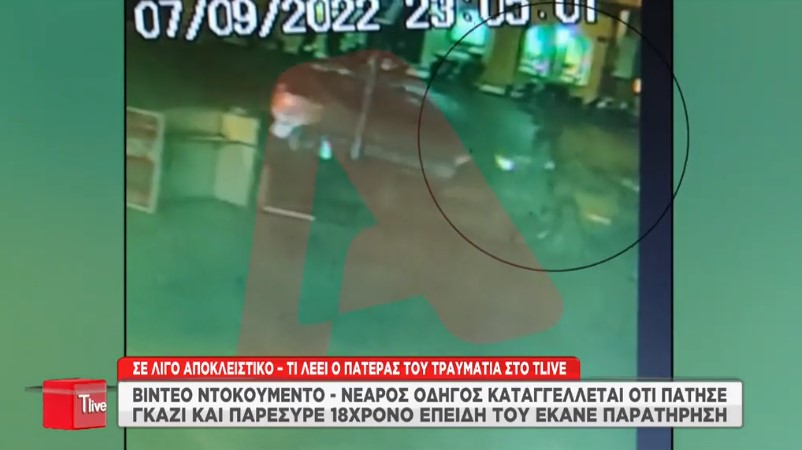 Το συγκλονιστικό περιστατικό έφερε στη δημοσιότητα ο τηλεοπτικός σταθμός του Alpha και η εκπομπή tlive όπου και καταγράφεται οδηγός να κάνει επικίνδυνους ελιγμούς με το αμάξι, με τον 18χρονο πεζό να του κάνει παρατήρηση. Ο οδηγός, σύμφωνα με το neakriti.gr, αντέδρασε έντονα και ακολούθησε φραστικό επεισόδιο.