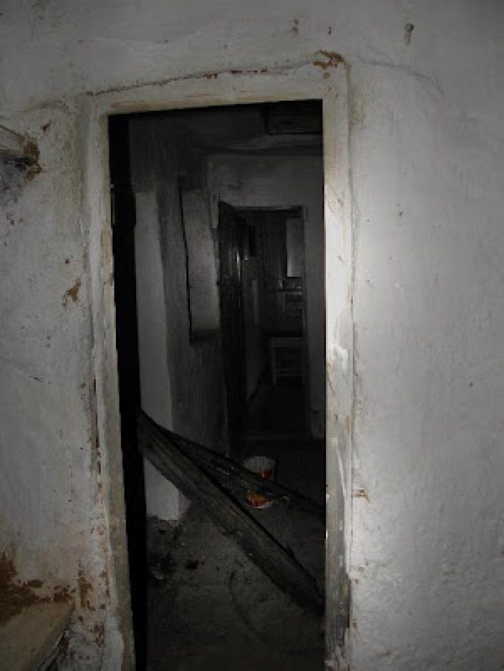 Αριστερά, υπήρχε ο τάφος του παπα-Τύχωνα, όπου ο Γέροντας είχε φυτέψει δενδρολίβανα για να μην πατιούνται. Μερικά σκαλοπάτια σε έναν μικρό κατήφορο οδηγούσαν σε ένα διάδρομο που βρισκόταν πριν από την είσοδο, μεταξύ του σπιτιού και ενός πεζούλιου. Οι άκρες του διαδρόμου ήταν κλειστές με πόρτες, προκειμένου να αποτρέπεται η κυκλοφορία του αέρα.