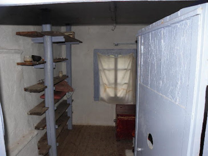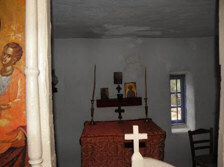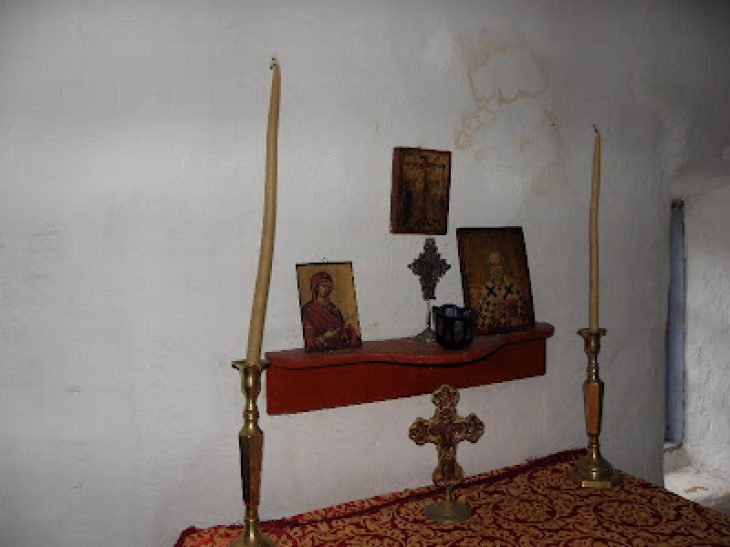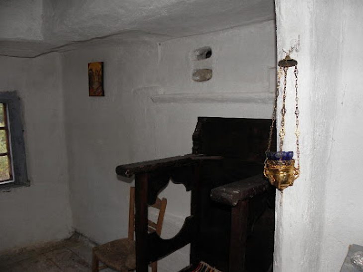 Ήταν μια εντυπωσιακή απλότητα. Λίγα μέτρα προς τα δυτικά από την είσοδο, υπήρχε μια άλλη εξωτερική πόρτα που οδηγούσε στο εργαστήριο και στο “Αρχονταρίκι”, ένα μικρό, απλό κελάκι με χαμηλό ταβάνι από καλάμια και χώμα, και με δύο πολύ στενά κρεβάτια που ήταν αρκετά κοντά, με ελάχιστη απόσταση μεταξύ τους ώστε να χωράει μόνο ένας άνθρωπος.