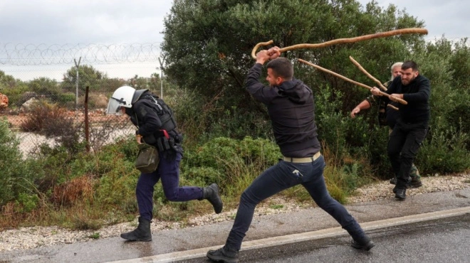 Ο φωτογραφικός φακός κατέγραψε επίθεση αγρότη κατά αστυνομικού της δύναμης των ΜΑΤ με… κατσούνα.