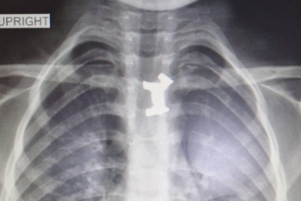 Εκεί οι παιδίατροι ακολούθησαν την προβλεπόμενη διαδικασία σε αντίστοιχες περιπτώσεις. Το πρωί υποβλήθηκε σε χειρουργική επέμβαση και οι γιατροί κατάφεραν να αφαιρέσουν με επιτυχία το μεταλλικό σκυλάκι από τον οισοφάγο του παιδιού.