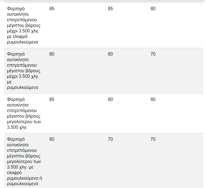 – Για τα φορτηγά αυτοκίνητα που μεταφέρουν πρόσωπα, το ανώτατο επιτρεπόμενο όριο ταχύτητας ορίζεται σε 40 χλμ/ώρα μέσα σε κατοικημένες περιοχές. Επιπλέον, ορίζεται σε 50 χλμ/ώρα έξω από αυτές.